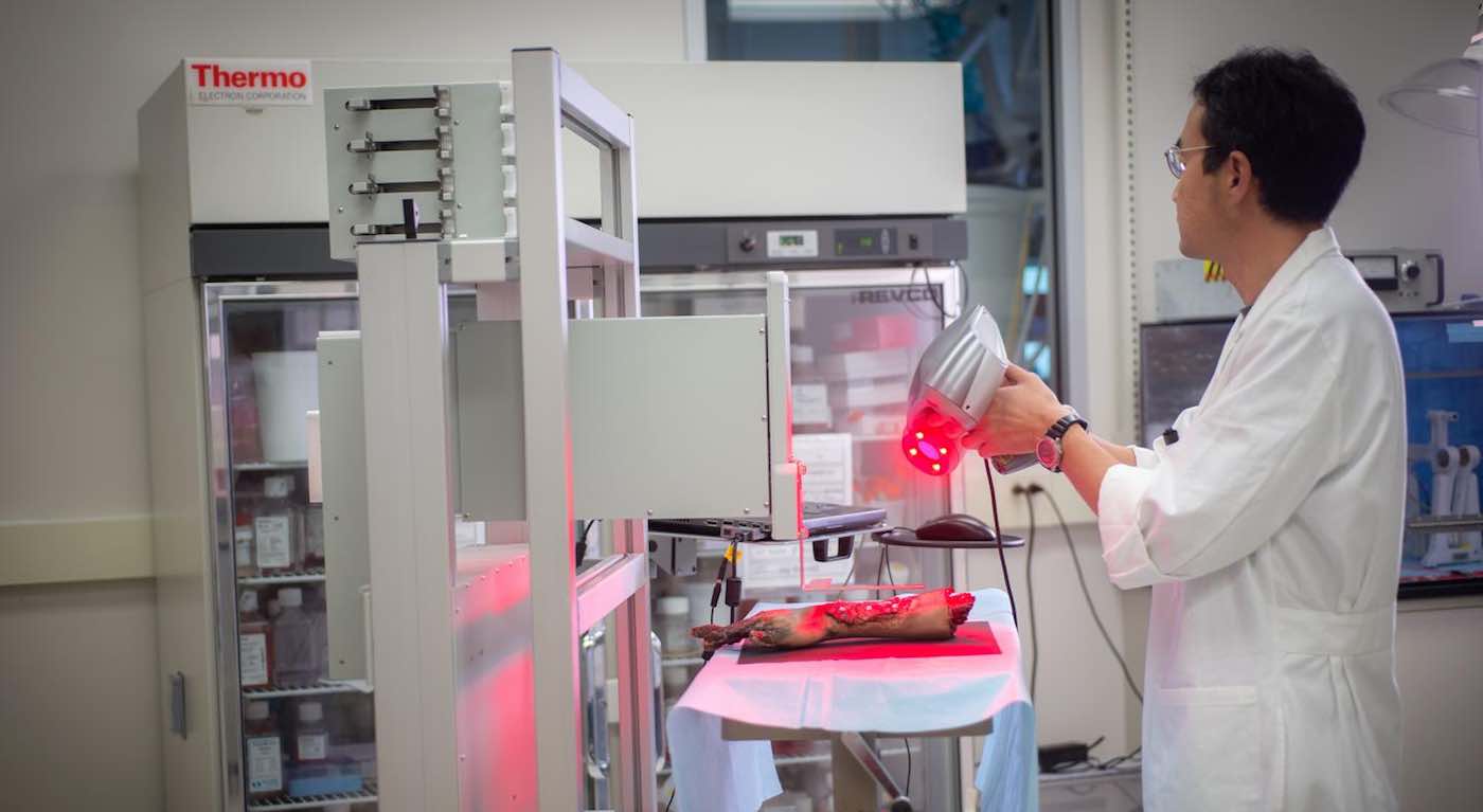 “The unique aspect of this technology is the mobility of the system and the ability to provide on-site management of extensive wounds by scanning and measuring them in order to deposit the cells directly where they are needed to create skin,” said Sean Murphy, a WFIRM assistant professor who was lead author of the paper published this month in Nature’s Scientific Reports journal.