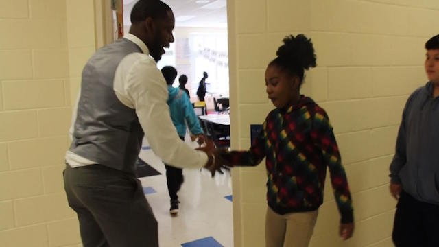 The educator got the idea when he heard that LeBron James had developed special handshakes with all of his team mates to build morale – his students have taken it in stride.
