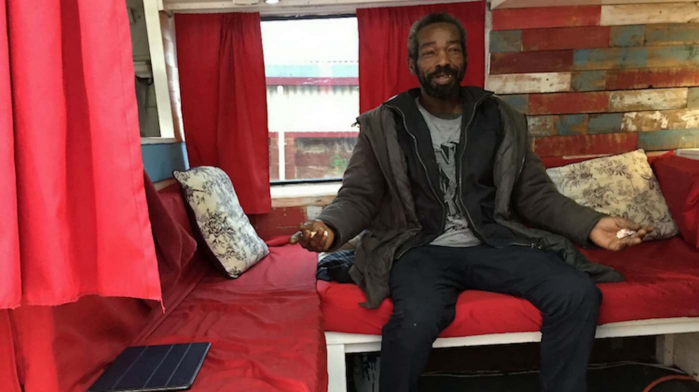 “A few months back, someone threw some booze on my sleeping bag at night … but now I’m in the van, nobody can do that to me.”