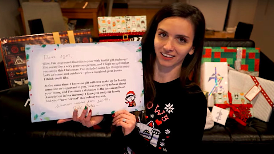 On December 17 she spied an email alert informing her that a Secret Santa package had been shipped through RedditGifts—the program offered by the global online discussion group—and it was being overnighted (an expensive shipping option) from Washington state. She immediately joked to her husband that maybe it was from Bill Gates, who was well-known as an avid RedditGifts player.