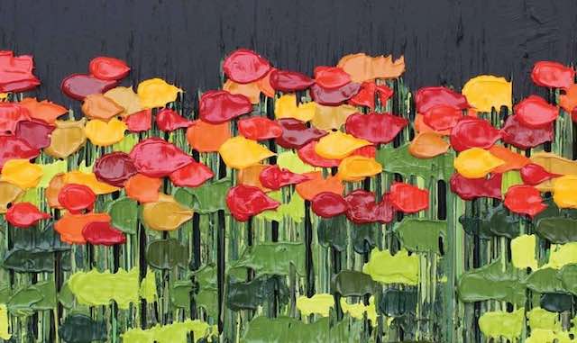 Though his sight continued to deteriorate after the treatment, his passion for art grew, and he developed a unique painting process that helped him literally feel his way around the canvas. By applying “plastic goop” to create peaks and valleys and painting them black, he’s able to find guidance along their hard ridges. After that, he applies brilliant colors, the trademark of his vibrant 3D paintings.