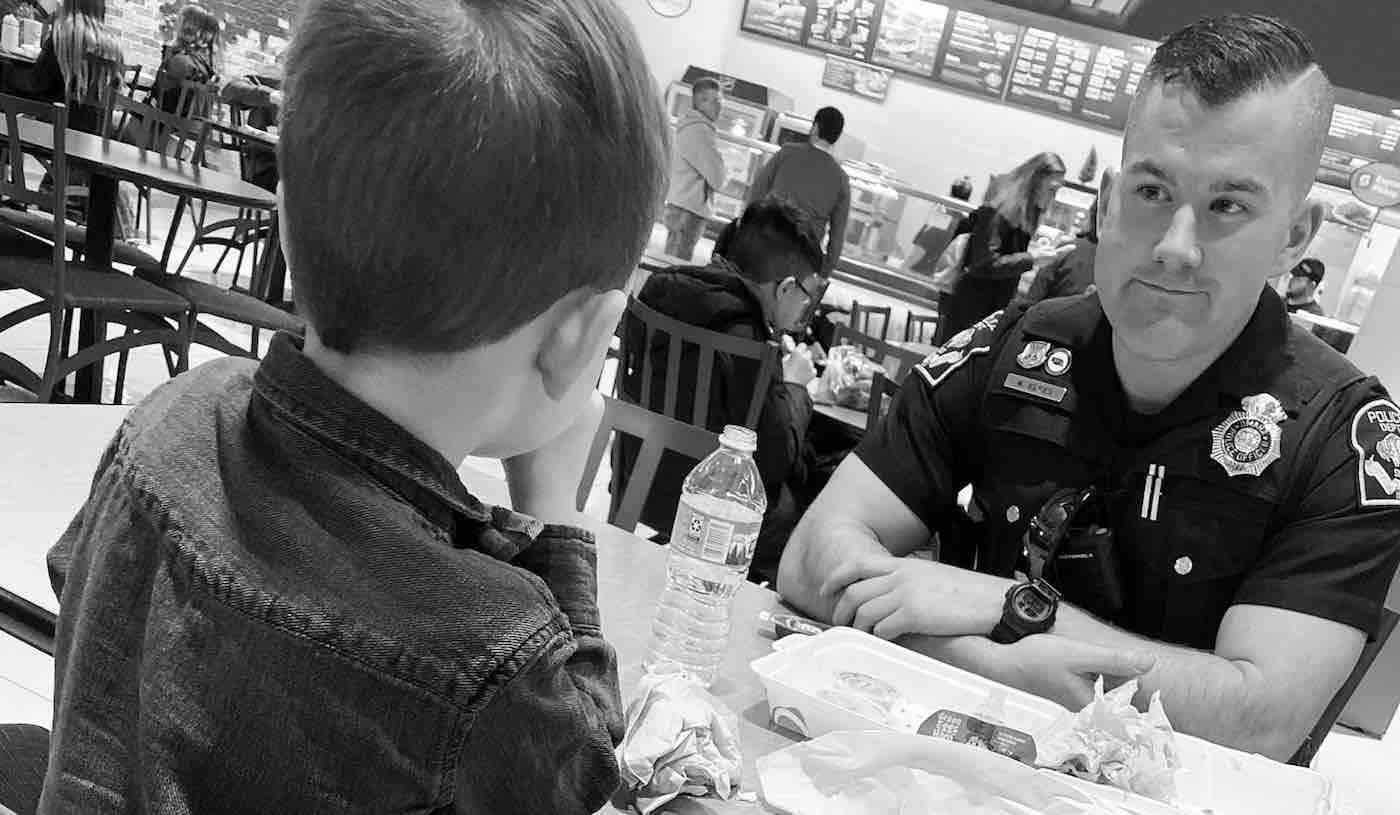 According to a heartwarming post from his mother, the 5-year-old boy from Omaha, Nebraska had been in the middle of frolicking amongst the mall’s play equipment when he suddenly caught sight of a police officer dining alone at the nearby food court.