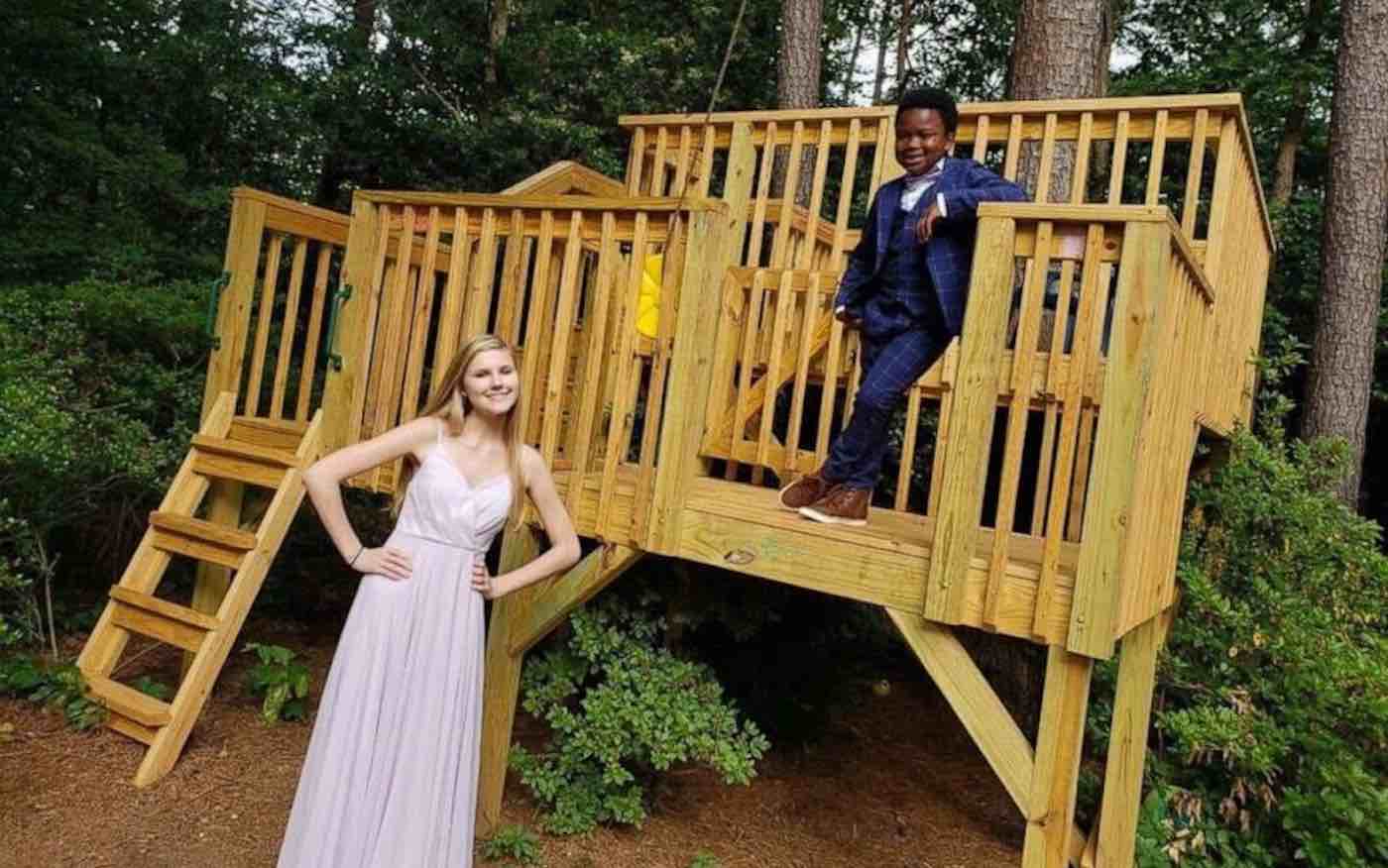 When Curtis heard about Rachel’s prom, he insisted on throwing a socially distanced “mini-prom” for his beloved nanny in their backyard.