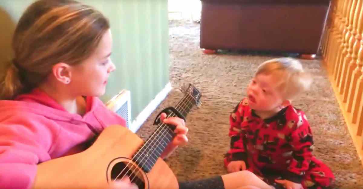 Want to know the most incredible part? Because Bo has Down syndrome, he only knows about 12 words – and “every word he has learned has been through music and singing.”