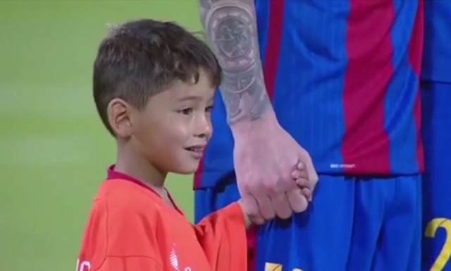 This 6-year-old Afghan boy went from wearing a homemade Lionel Messi sports jersey out of plastic bags to being his number one sidekick during an exhibition game.