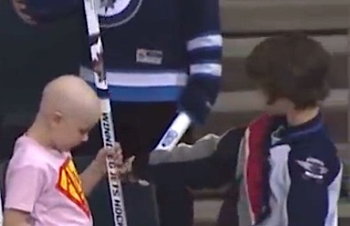 When seven-year-old Alyx Delaloye left chemotherapy for a Winnipeg Jets hockey game earlier this month, she couldn’t have known that an entire city was about to rally around her, including one particularly generous boy named Keaton.