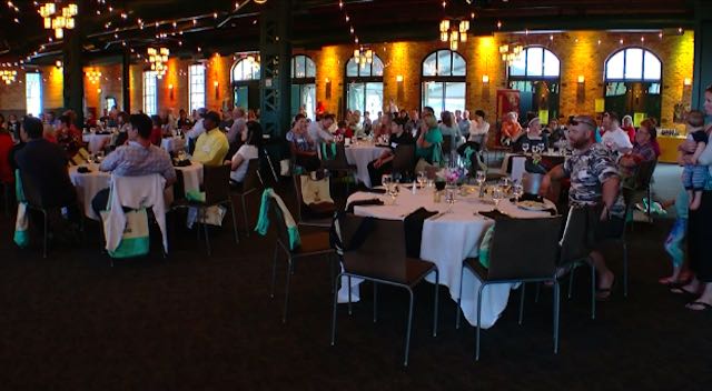 Instead of wedding guests, 175 charity volunteers were packed inside the Nicollet Island Pavilion in Minneapolis, Minnesota. Other people honored at the reception were families that the charity has helped in the past.