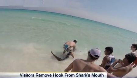 It took two attempts — the shark got away once and they had to chase it along the beach. But the teens and their impromptu rescue team removed two fish hooks and a lure from the shark’s mouth before releasing it back into the Gulf of Mexico.