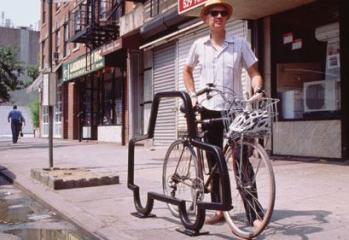 David Byrne is an avid cyclist and an artist too. The musician who formed the Talking Heads band back in the 1970’s submitted designs to the New York City Department of Transportation for nine bike racks to reflect the character of the neighborhoods where they are installed, like a dollar sign for Wall Street.