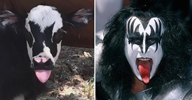 This heavy metal heifer is becoming a rock star for having the same facial markings as Gene Simmons: the infamous bass player from the band KISS.