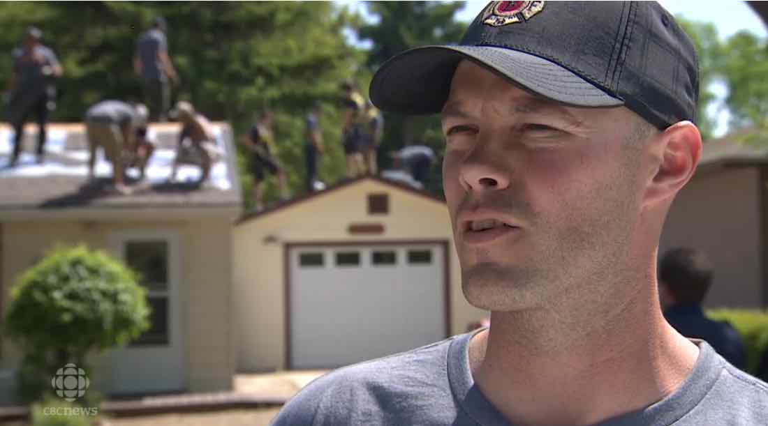 The Regina Fire Hall Number 4 rounded up supplies–donated from Dynamic Roofing and Kenroc–and volunteered a couple hours to do the job themselves.