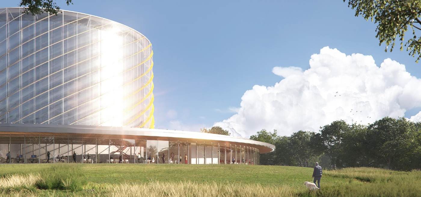The fusion plant, illustrated as a glittering cylindrical building of glass and curved hanger-bay doors, will be constructed in Culham, and construction is set to begin next summer in collaboration with the UK’s Atomic Energy Authority.