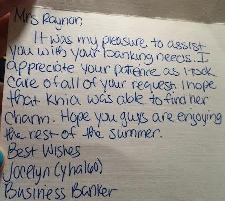 It makes me happy to think there are still wonderful people in this world, even though all we hear is the negative. This is a special thank you to Jocelyn from Capital One who I do not know and I may never know. You put a bright smile on my daughters face today.