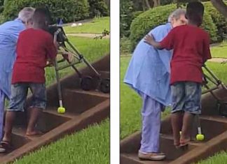 Boy Stops Traffic So He Can Help Elderly Stranger Climb a Set of Stairs