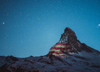 Villa Suiza Proyecta Imágenes de Banderas en Montaña como Símbolo de Solidaridad ante la Pandemia