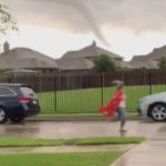 Barefoot Teacher Pictured Running Ahead of Tornado to Warn Families in Carpool Lane to Take Cover