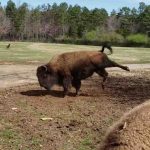 As a means of celebrating the first day of spring, staffers at the North Carolina Zoo uploaded a video of their resident bison doing “her happy dance”.