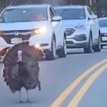 This Turkey’s Got Authority! Holds Up Traffic So His Fellow Fowl Can Cross the Road (WATCH)