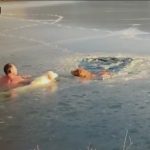 When two Labradors fell through the surface of an icy reservoir earlier this week, they were lucky that a Russian free diver was walking by.