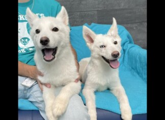 Snowy Husky Pups Get Adopted Together After Being Thrown Over Shelter Fence
