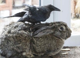 Crow Believes He’s a Rabbit After Being Fostered With Broken Leg by Couple With Five Bunnies