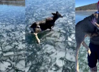 Watch Fishermen Risk Walking on Frozen Lake to Rescue Exhausted Baby Deer