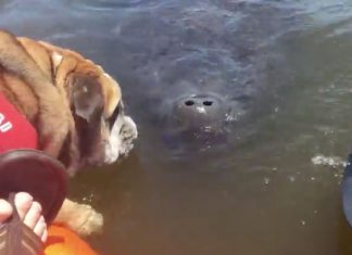 Watch This Bulldog Share a Sweet Smooch With a Curious Wild Manatee