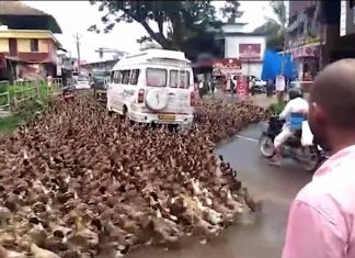 Watch an Astonishing Scene as Thousands of Stampeding Ducks Bring Traffic to a Standstill