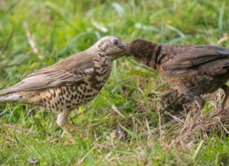 Rare Bird Moment as Photographer Witnesses Mistle Thrush Feeding Orphaned Blackbird as Her Own