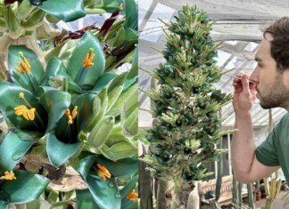Hand Pollination of ‘Sapphire Tower’ Helps Rare Plant Survive–Only Blooming Every 20 Years