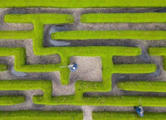 Mesmerizing Photo Shows Gardeners Perfecting a Maze at 625-Year-old British Castle