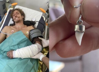 After a Shark Attack Doctors Found a Tooth in His Arm–He Now Wears it as an Earring ‘Trophy’