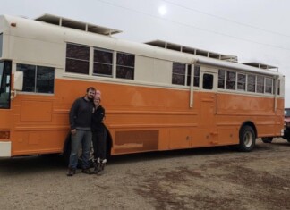 Couple Converts 40-Foot School Bus into Gorgeous Home for Working and Travel–LOOK INSIDE