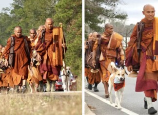 Rescue Dog Leading 19 Buddhist Monks on 2,300 Mile Peace Walk Across the US