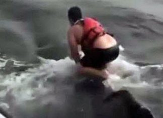 Watch Fisherman Climb On Entangled Whale’s Back So He Can Set It Free