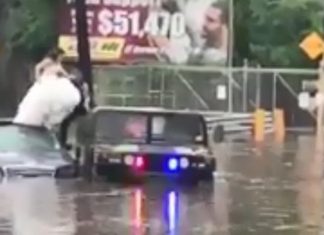 Watch Police Officer Rescue Stranded Bride From the Roof of Her Flooding Car