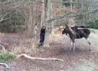 Watch Brave Man Free Moose Trapped By Tree Branches