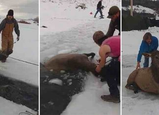 Watch Dozens of Pedestrians Pull Elk Herd From Frozen Waters
