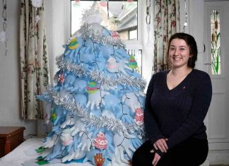 Mom With Rubber Glove Christmas Tree Turns Down Strangers’ Gifts, Asking People to Donate to Charity Instead