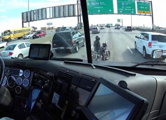 Watch Trucker Use His Vehicle to Block Traffic So Stranded Motorcyclist Can Move to Safety