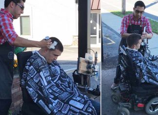 When Man in Wheelchair Can’t Get into Shop, Barber Happily Cuts His Hair on the Sidewalk