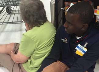 Walmart Employee Gets On the Floor to Support Woman After She Passes Out