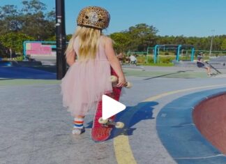 Phenomenal 6-yo Skateboarder Performs in Pink Party Dress and Leopard Print Helmet