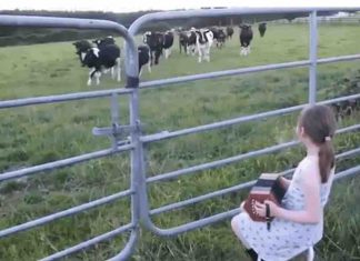 Watch the Sweet Moment a Herd of Cows Charge Up a Hill to Listen to Little Girl’s Concertina