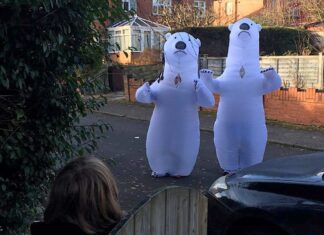 Grandparents Finally Get to Hug Grandkids After 9 Months Thanks to Inflatable Polar Bear Costumes