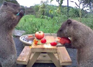 These Groundhogs Came Out – Then Shared a Tomato Feast at a Tiny Picnic Table (Watch)