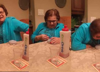Couple Can’t Contain Their Laughter When Wife Accidentally Sends Beauty Product Flying