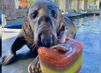 Rescued Seal Celebrates Birthday With Ice Cake –Then Falls Asleep Right On Top of it (LOOK)