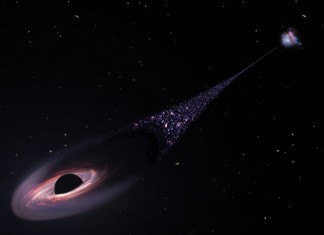 Hubble Sees a Possible Runaway Black Hole Creating a Trail of Stars