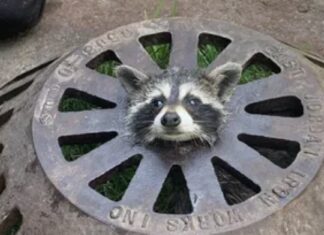 Firefighters Get Creative to Help Baby Raccoon With its Head Stuck in a Sewer Cover